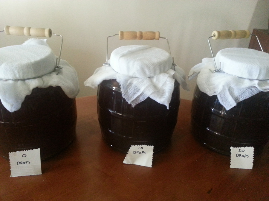 0 drops, 10 drops, and 20 drops were added to the three brews.